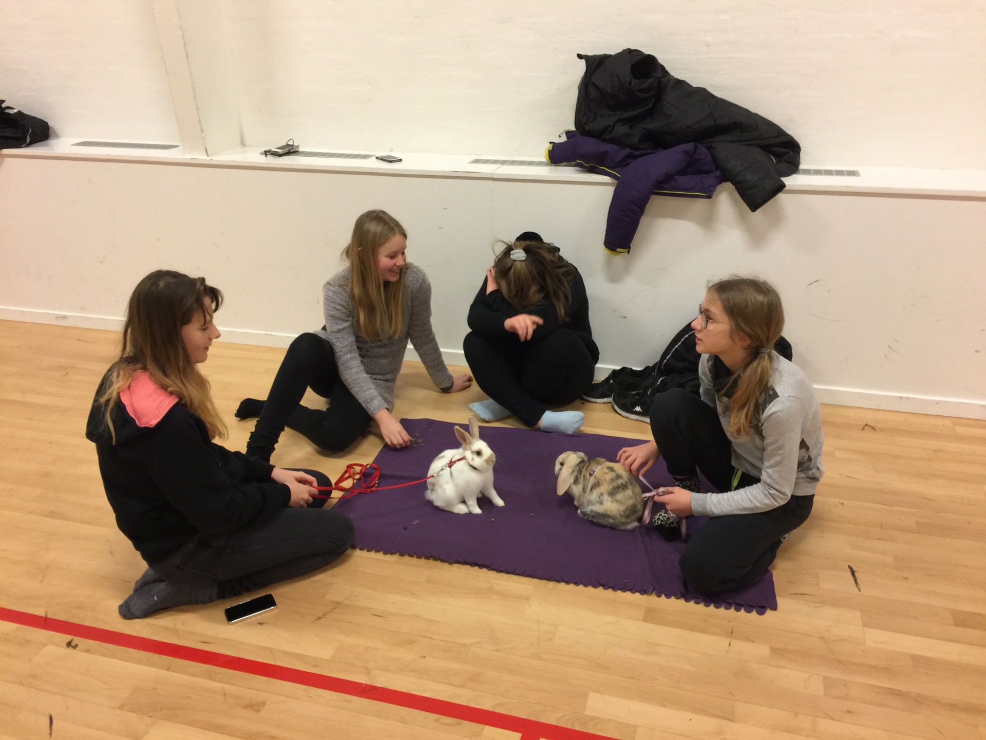 Billeder fra dagens fritidsklub. Kaninspring i salen hver tirsdag klokken 16:00 og gang i cafeen og på byggeren.