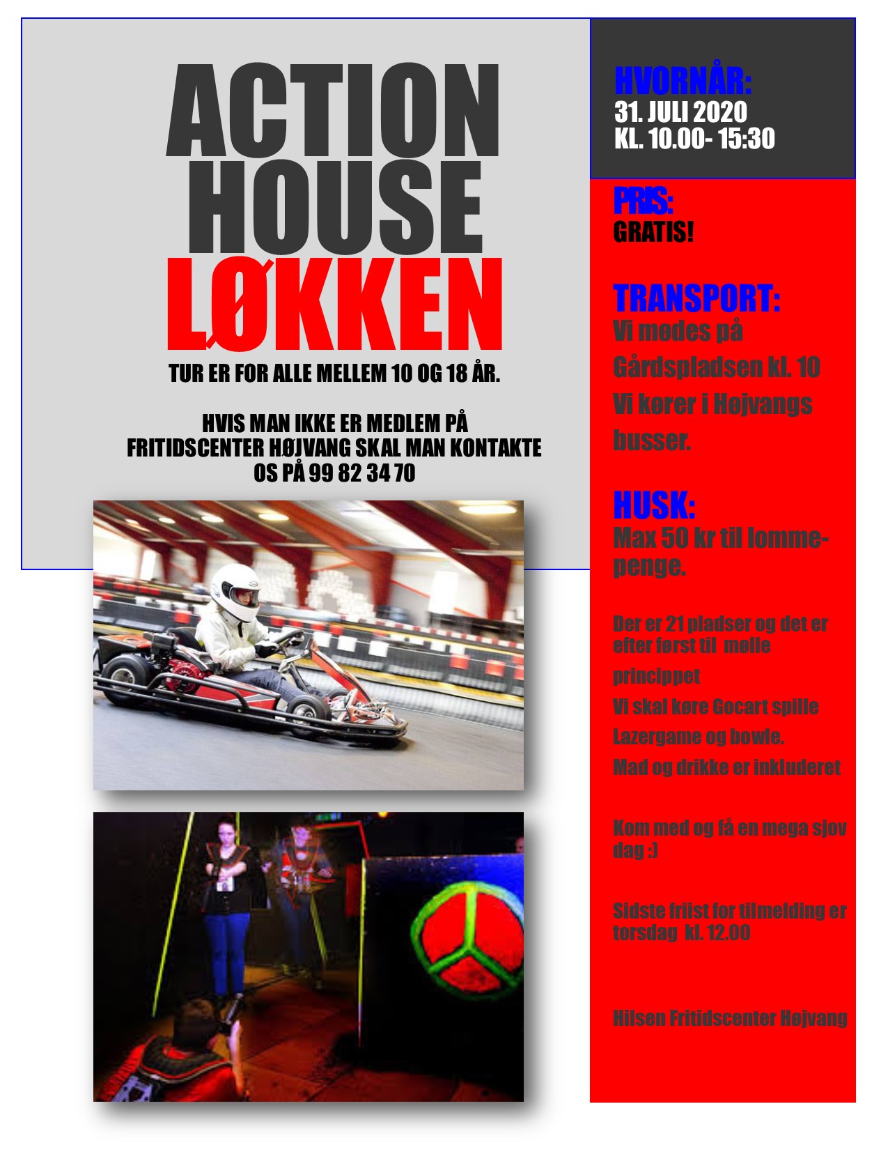 ACTION HOUSE TUR 31.07.2020 Udgivet den28. juli 2020ForfatterDan Riis På fredag tager vi en tur til Action House. Turen er for alle unge. Er du ikke medlem af klubben, så kontakt os.