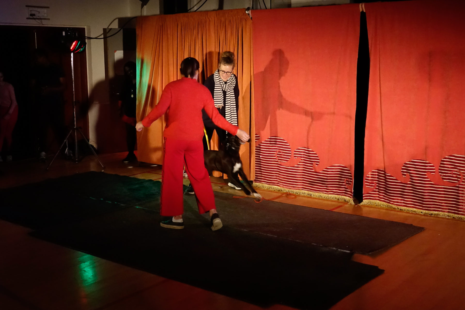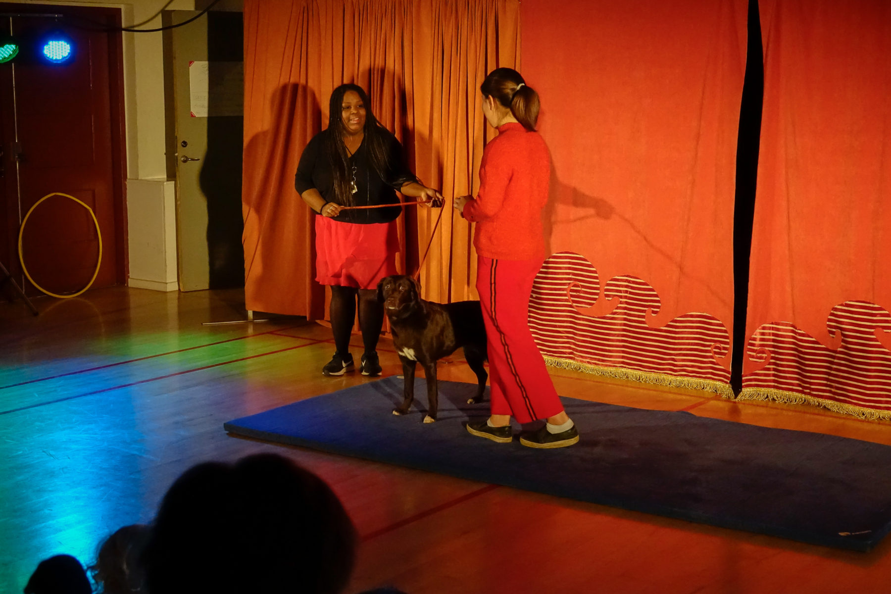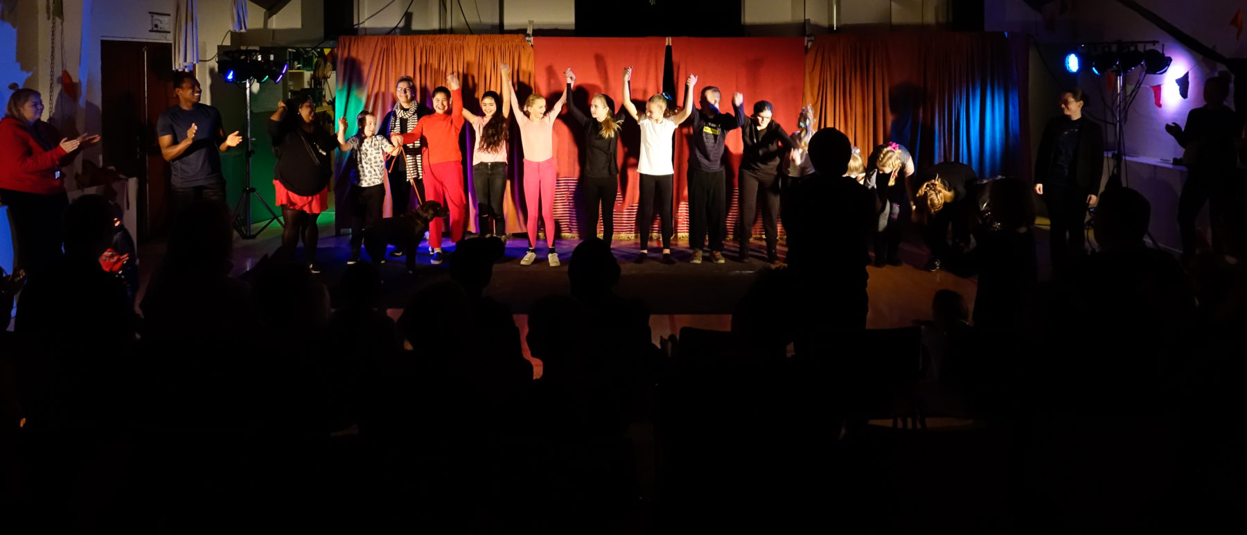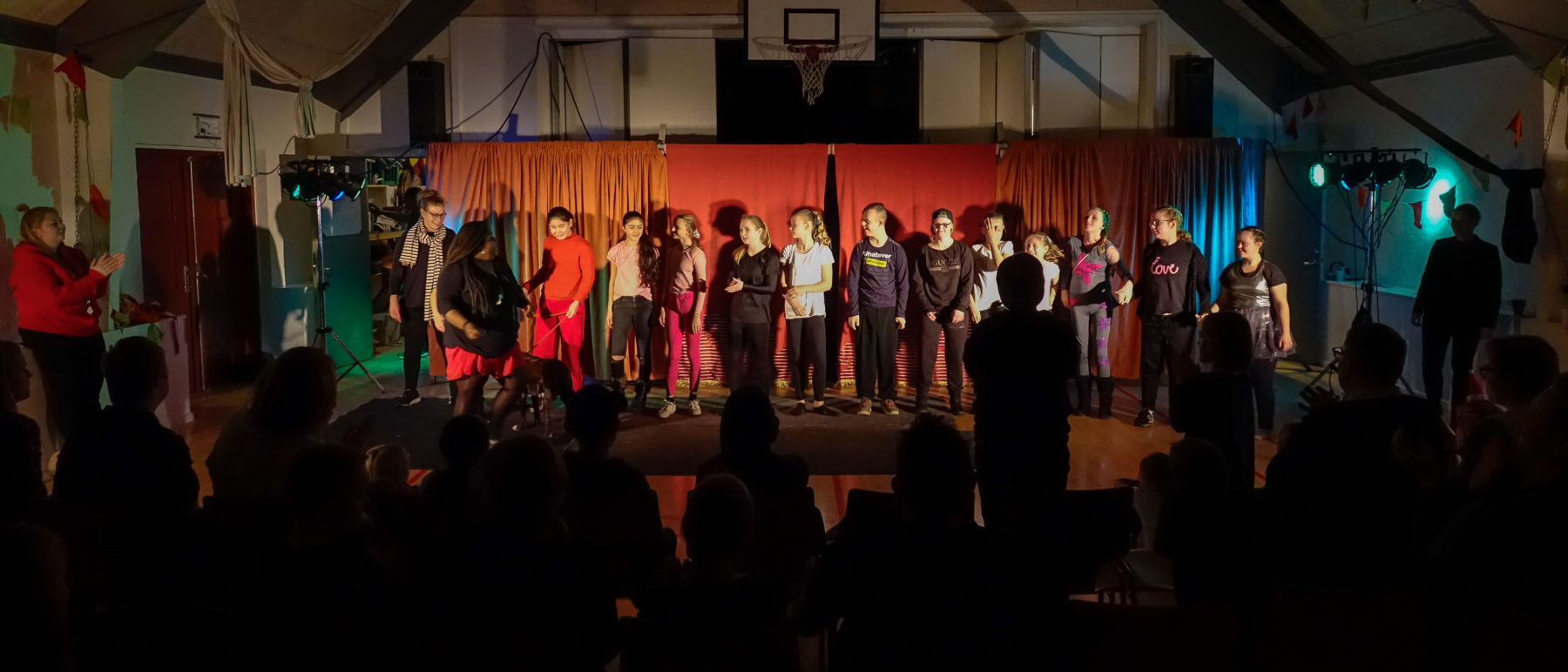 Cirka to gange årligt laver vi forestillinger med publikum hvor man kan være med foran eller bag scenen hvis man har lyst.