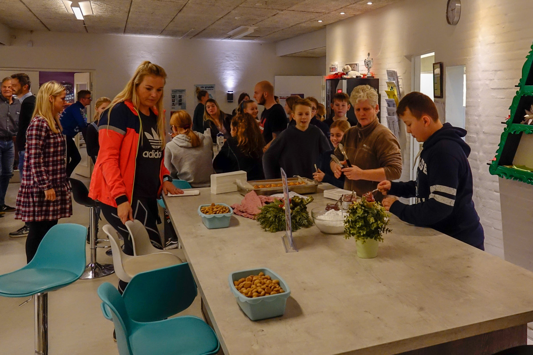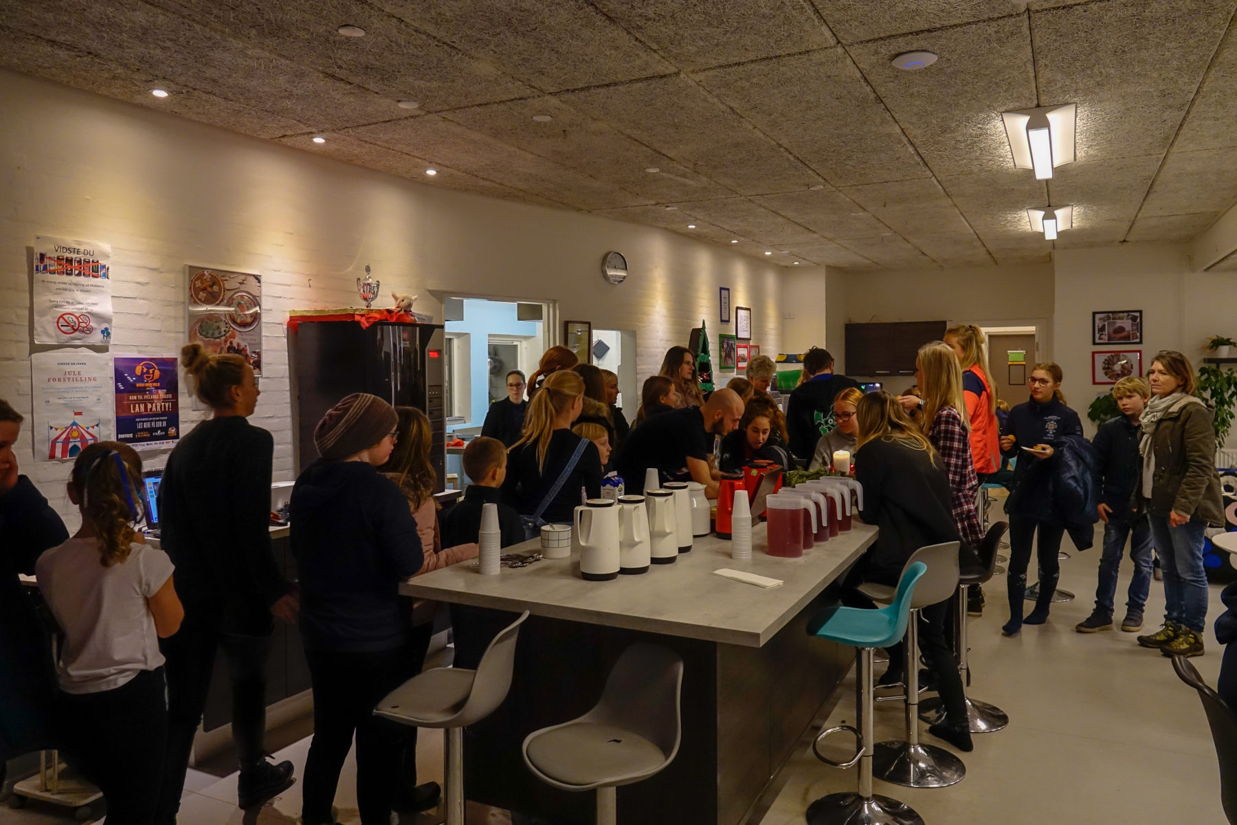 - Familier som står i kø til mad i vores cafe