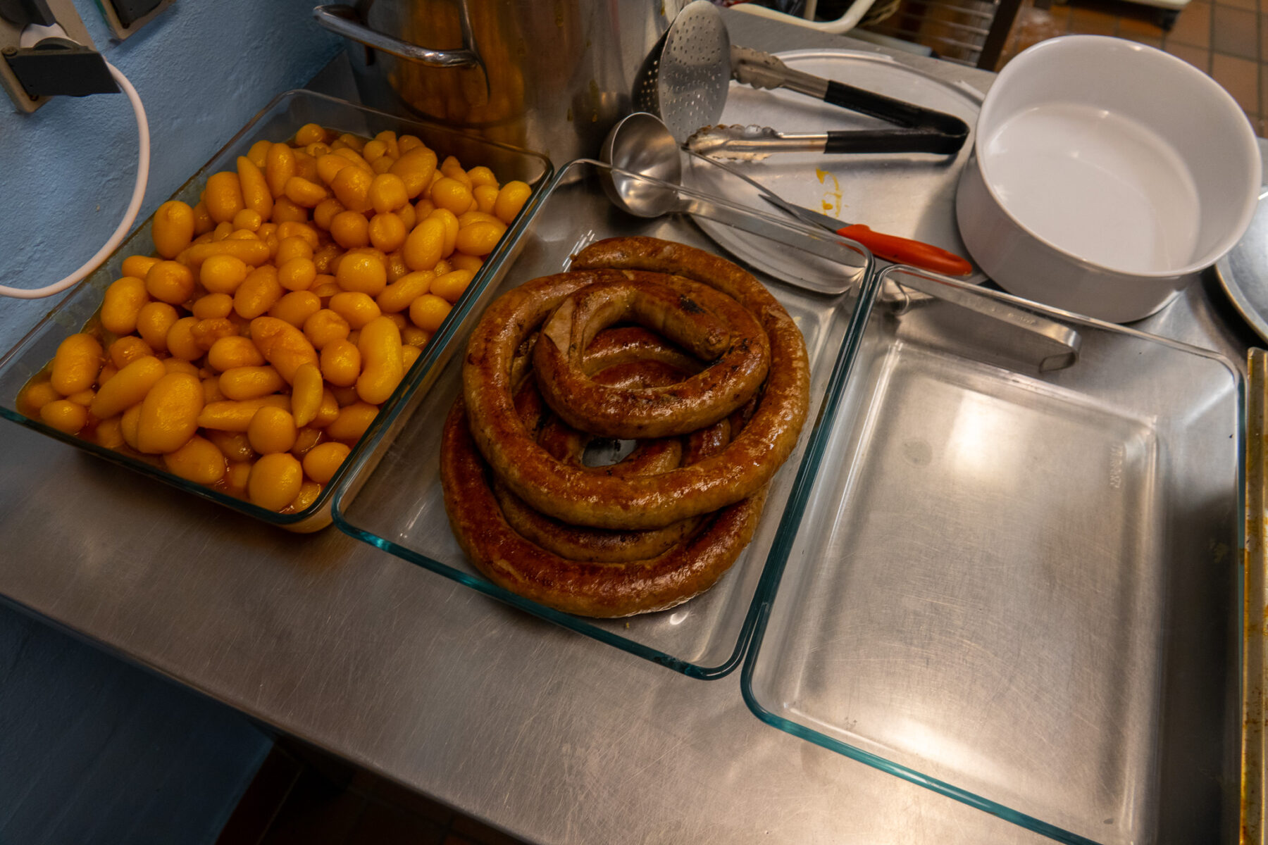 Til natmad lavede vi hotdogs med det hele som forældrene kunne spise med til de børn som tog hjem til midnat.