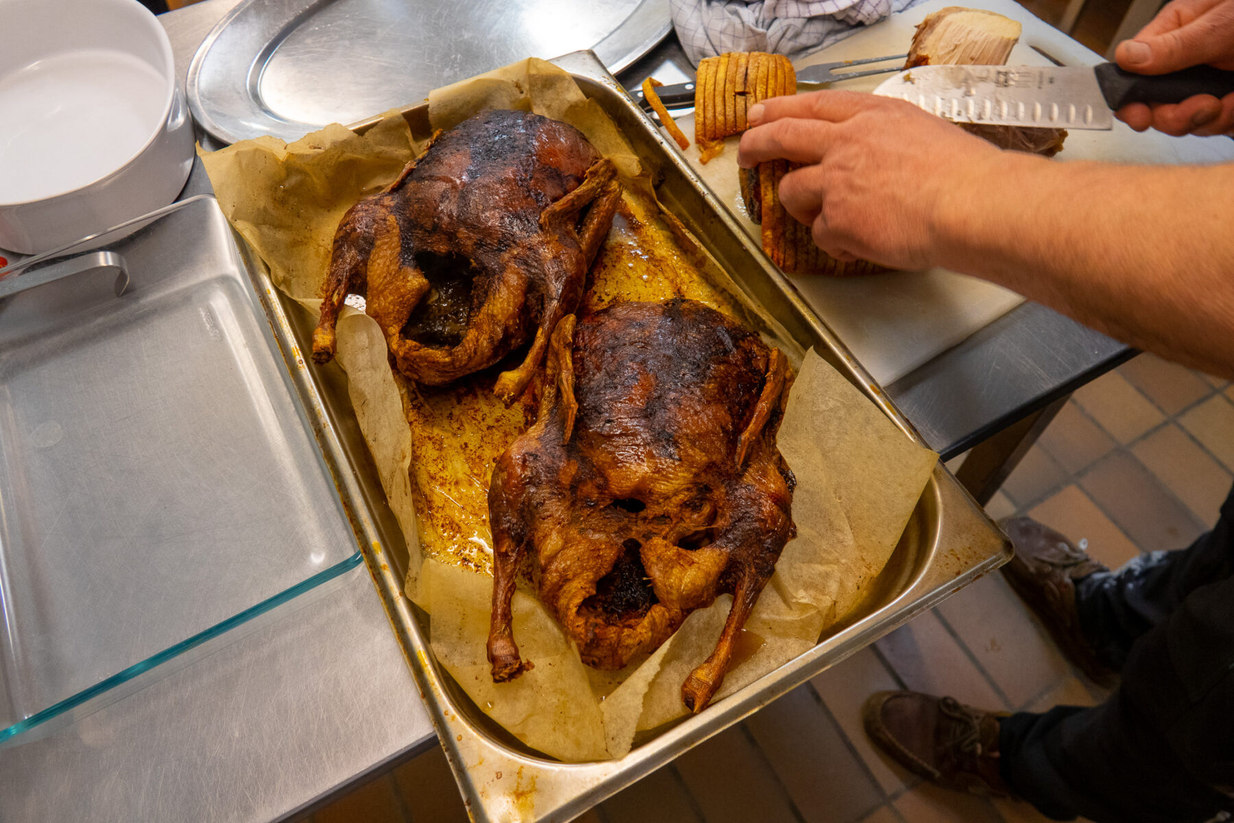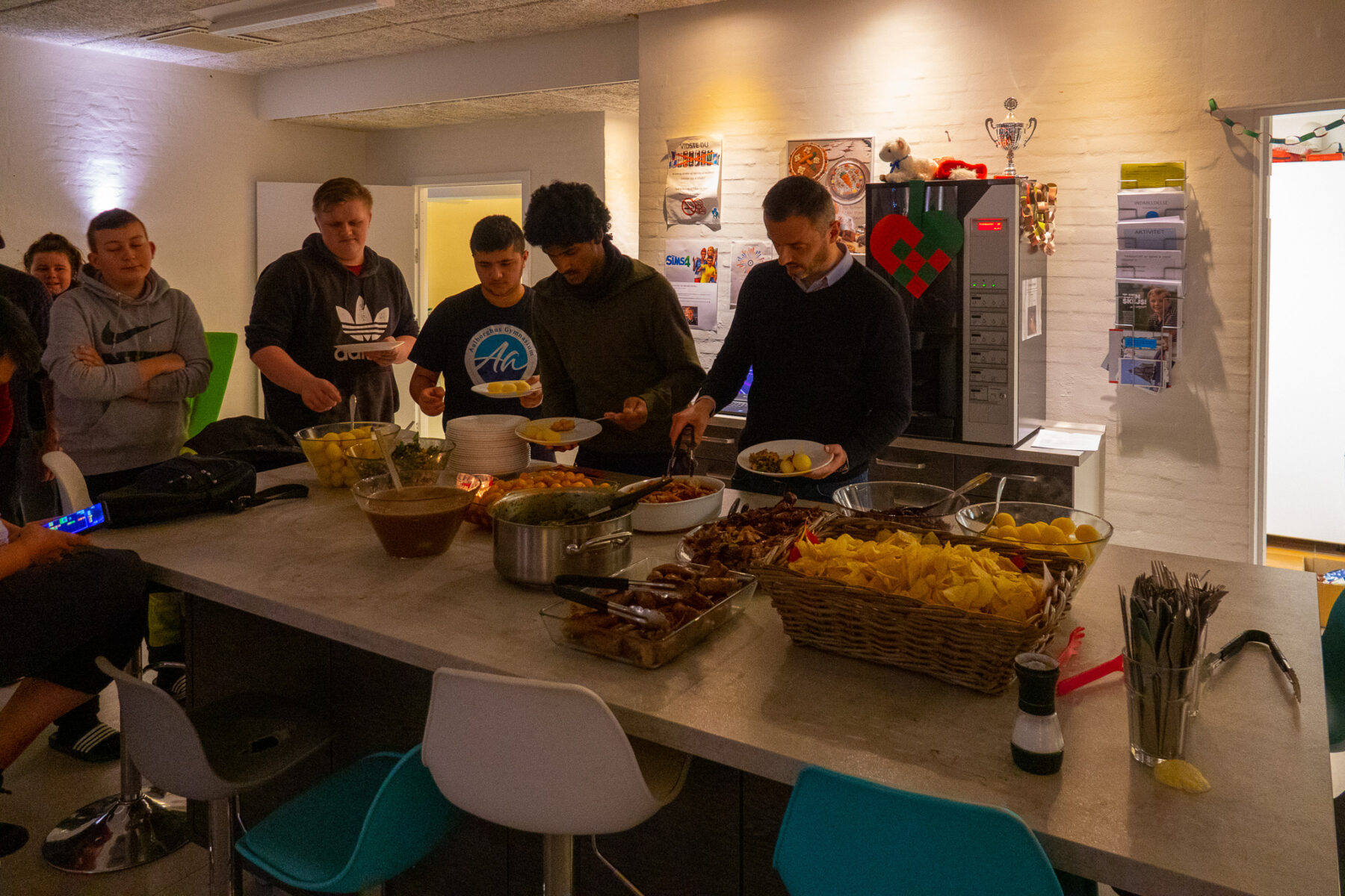 Tradition tro afholdt vi også julefrokost for vores ungdomsklub med rigtig julemad som Peter S og Cecilie stod for mens Pedja viste hvordan man skærer stegen ud.