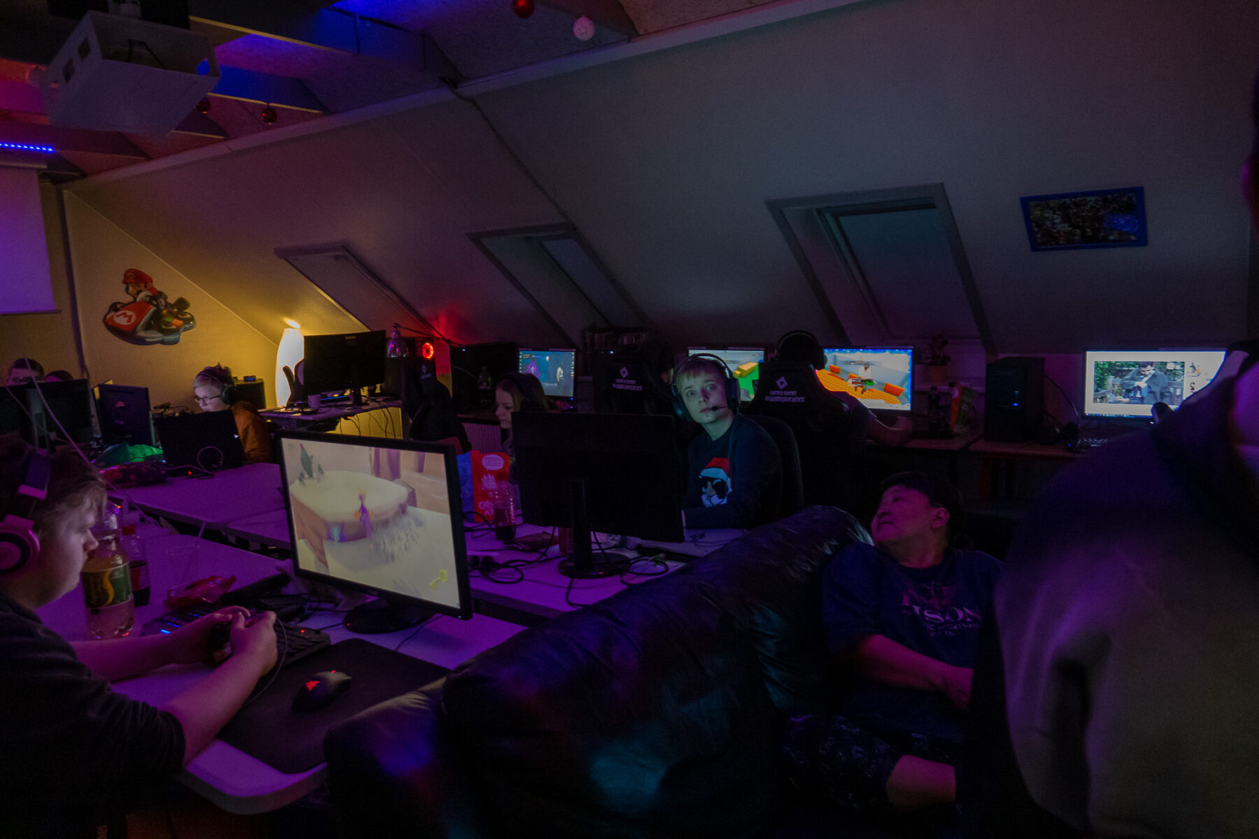 Samme aften afholdt vi lan party for hele klubben. Vi havde omkring 40 unge til lan party/i løbet af aften/natten. Vi startede klokken 18.00 med at sætte de medbragte maskiner op og spiste hjemmelavet pizza med sodavand klokken 20.00. Derefter gik det løs med gaming. Alt fra CS GO til Roblox til Just Dance som var flyttet ned i vores skolestue blev spillet hele aften og natten.
