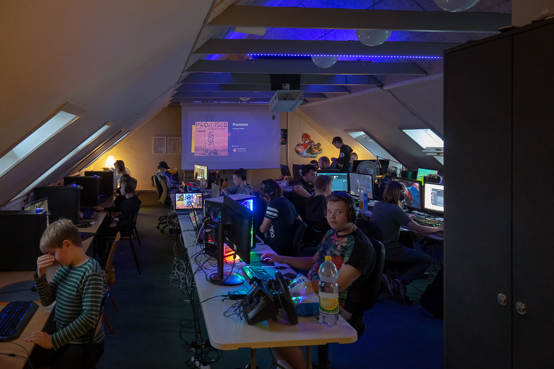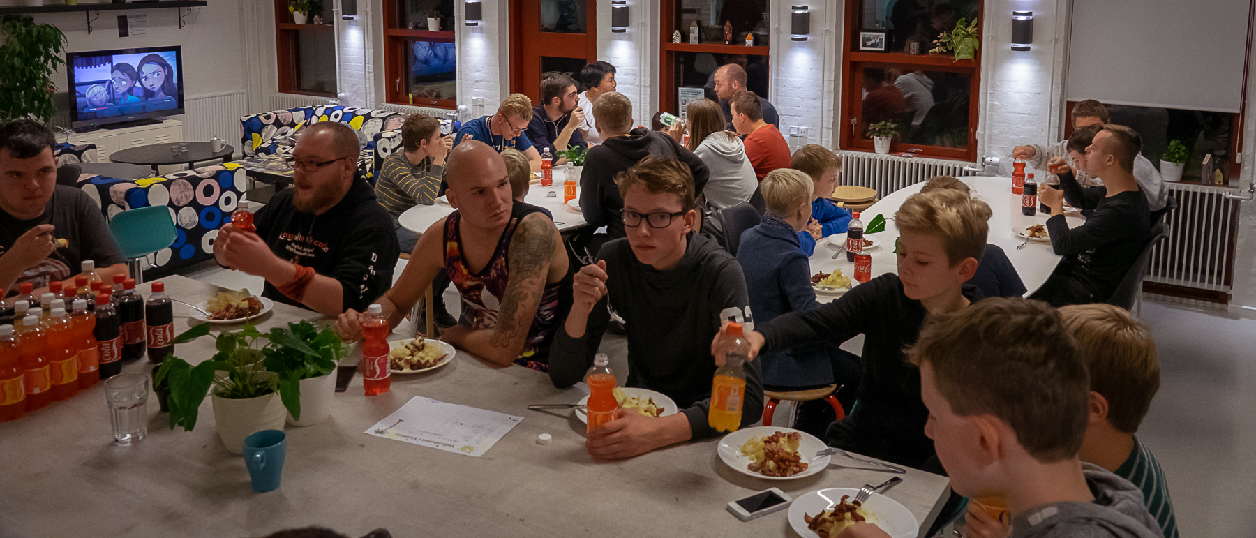 Lan party’et har budt på ca 30 unge plus voksne som har set frem til en fed gaming aften/nat. Klokken siger nu 03:30 og der er en dæmpet stemning.