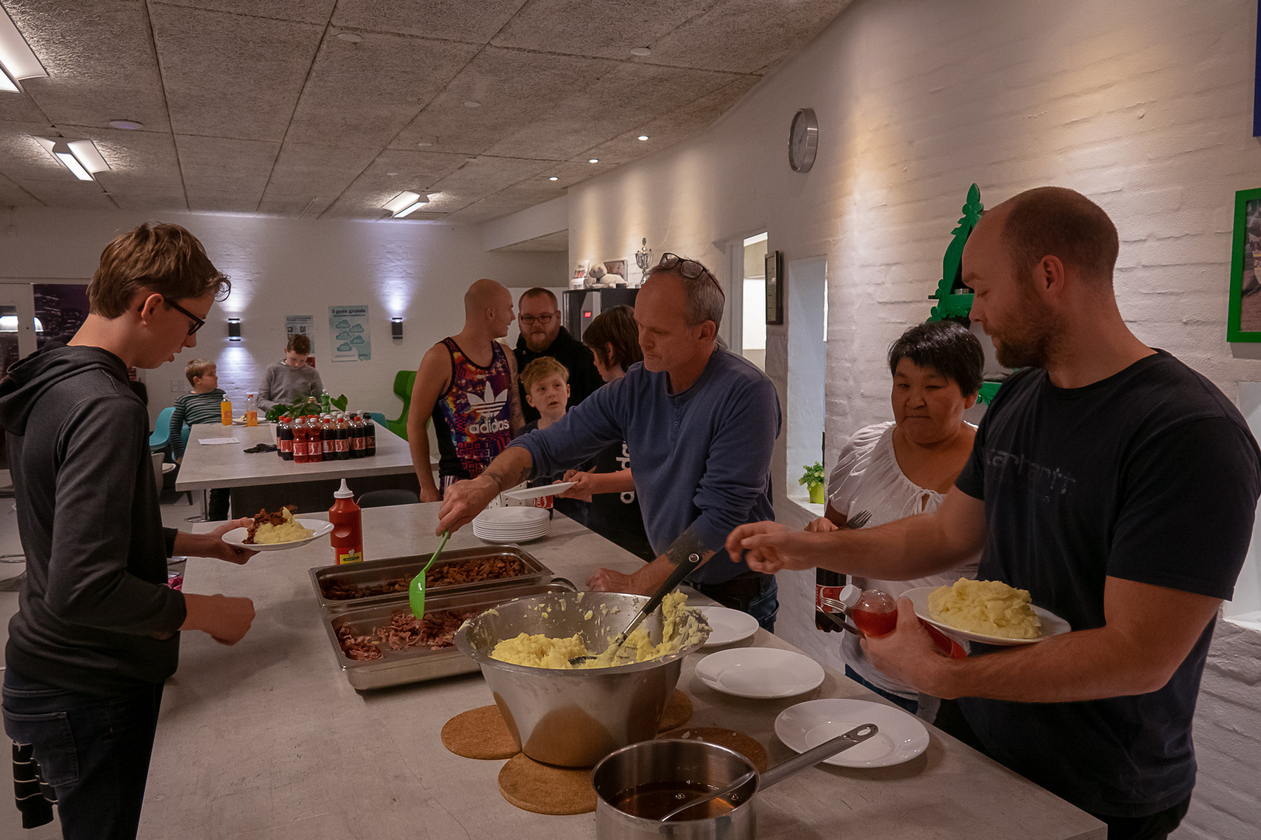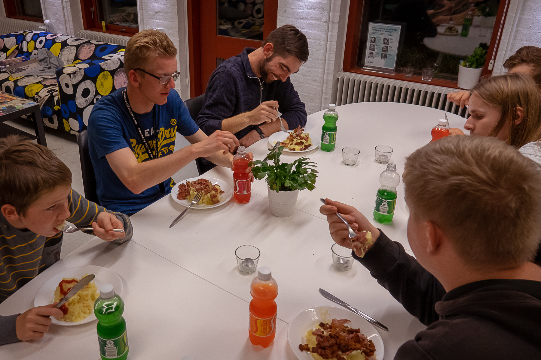 Aftensmaden tog vores frivillige Erik, Jess og Amalie sig af. Det sætter vi stor pris på. Vi fik næsten spist os igennem 15 kg kartofler som endte med at blive til Brændende Kærlighed.