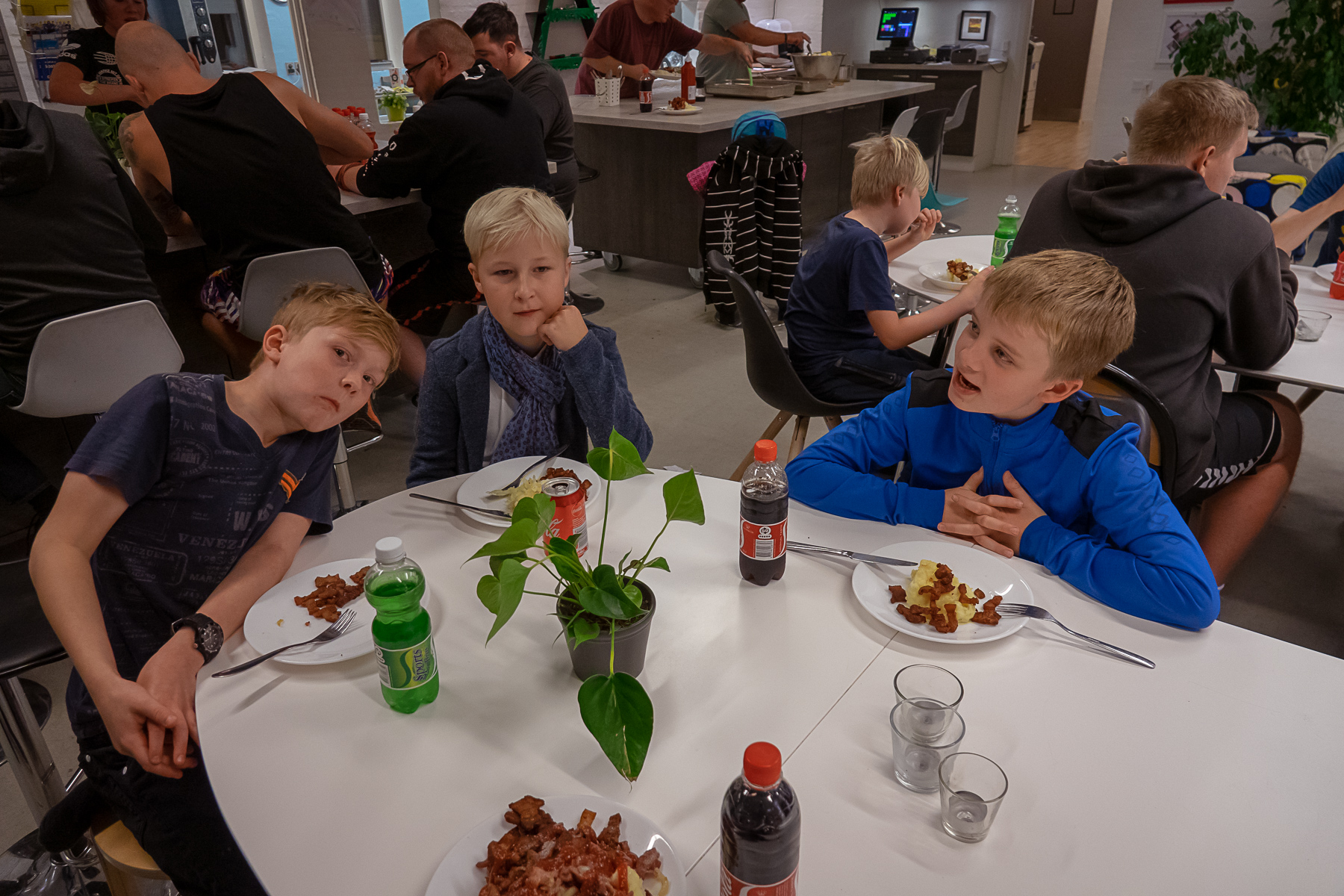 Klokken ca 08:00 kører vi udstyr hjem for de unge, og spiser morgenmad klokken 09:00 med resten af klubben når de møder ind. Klokken 10:00 siger vi godnat