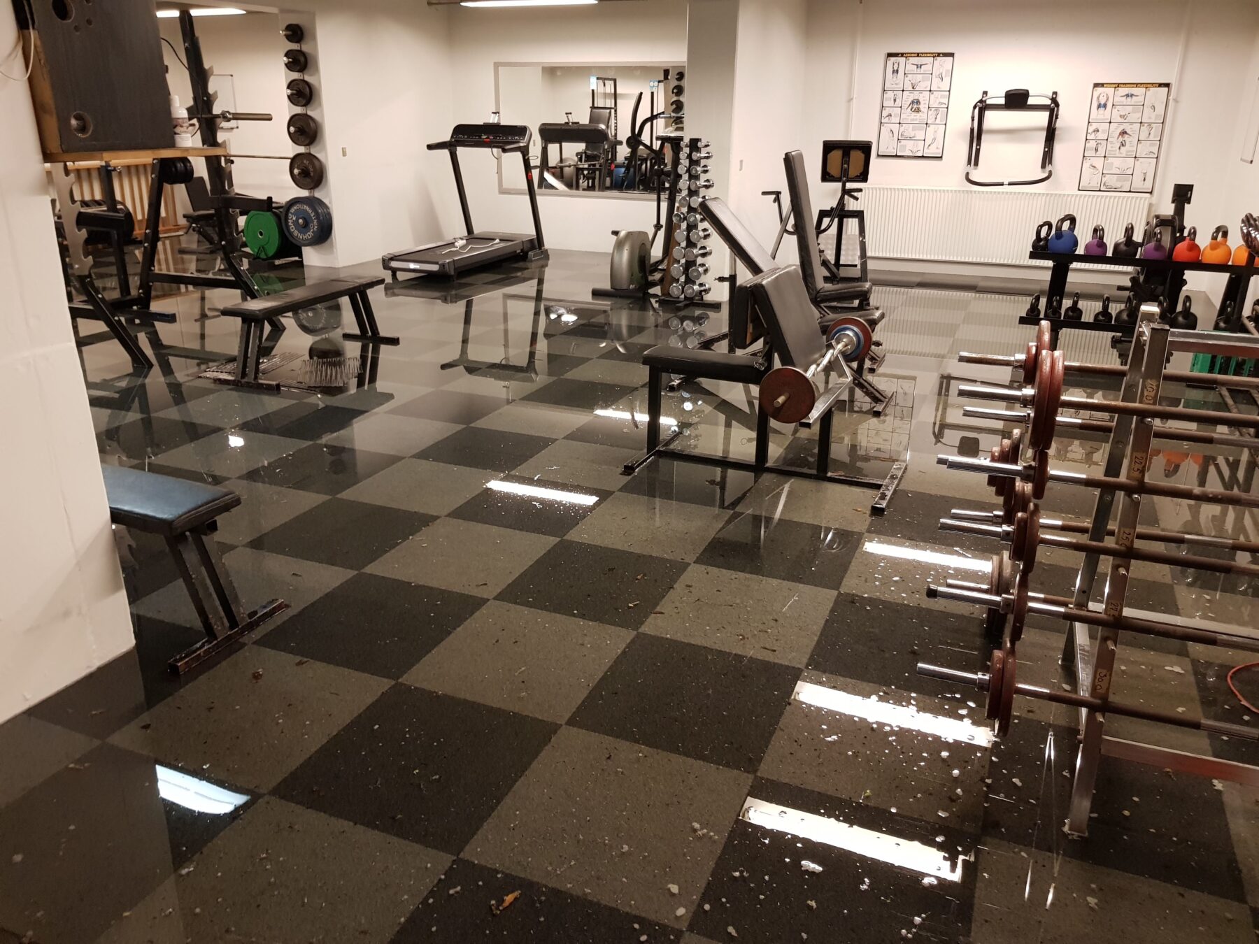 Som mange i Svenstrup bemærkede kom der en lettere byge her til aften. Den ramte også Højvang. Vores motion i kælderen har været ramt af vand før. Selvfølgelig skulle det vælte ned med så meget vand, at vores kloak ikke kunne følge med.