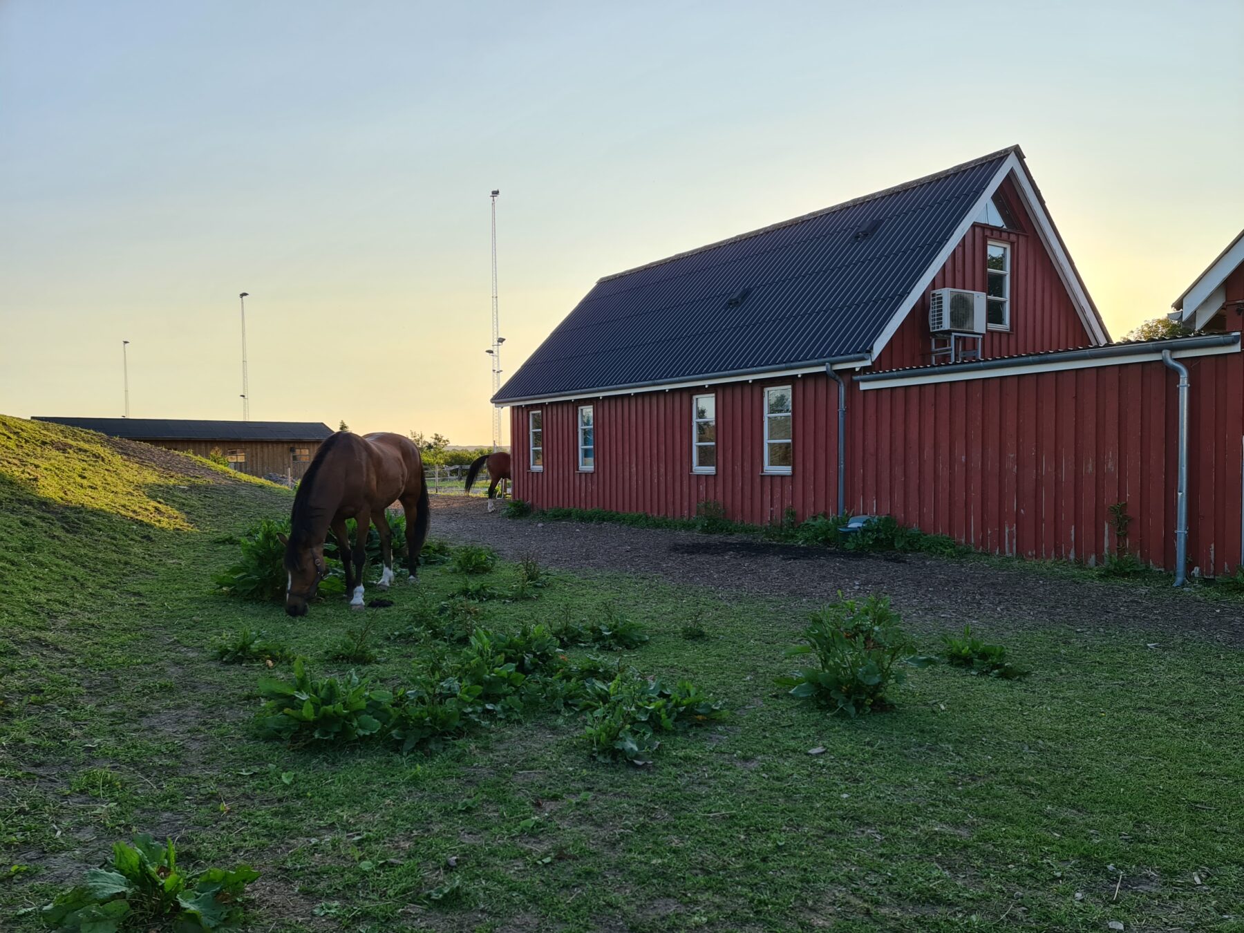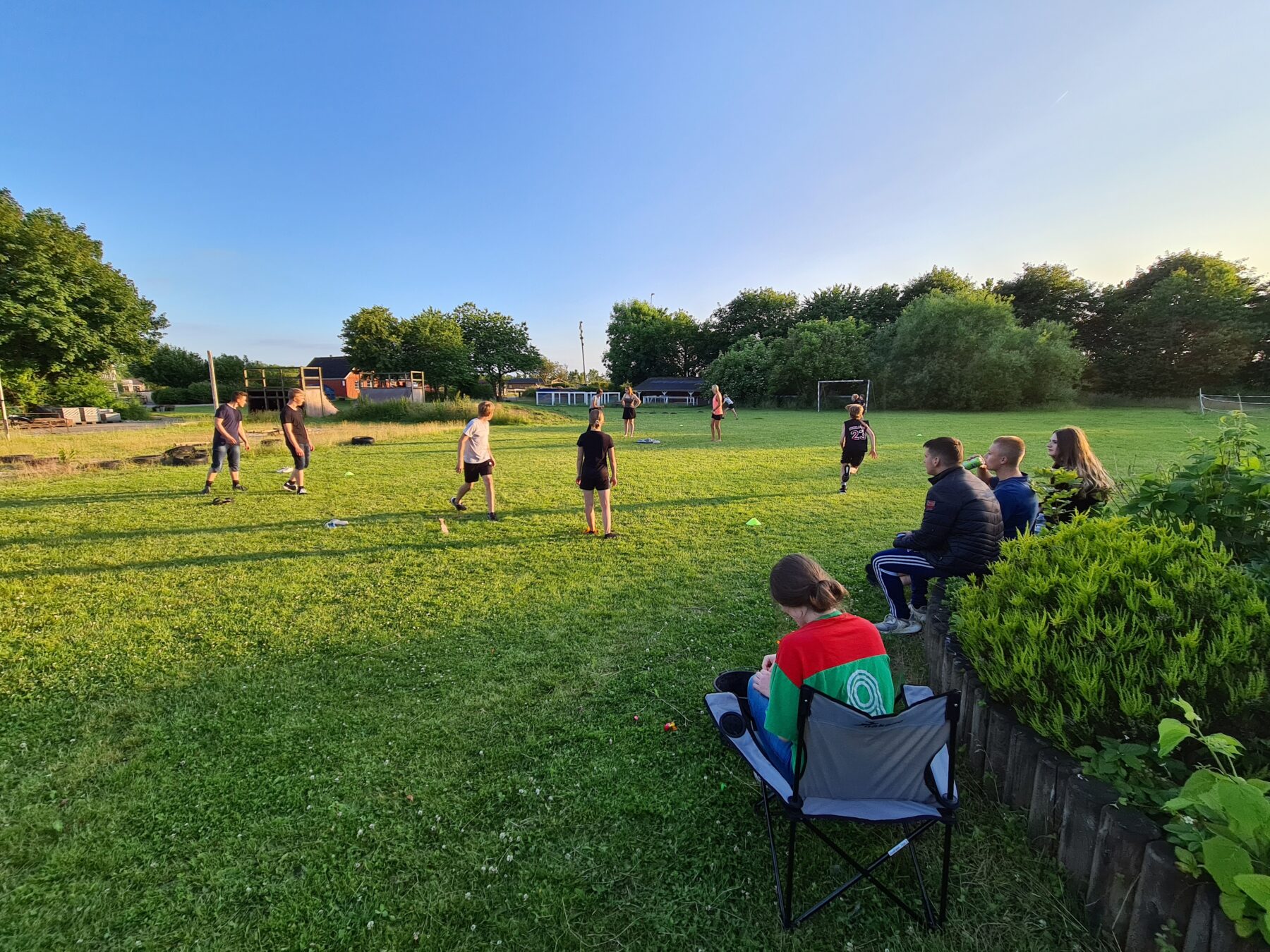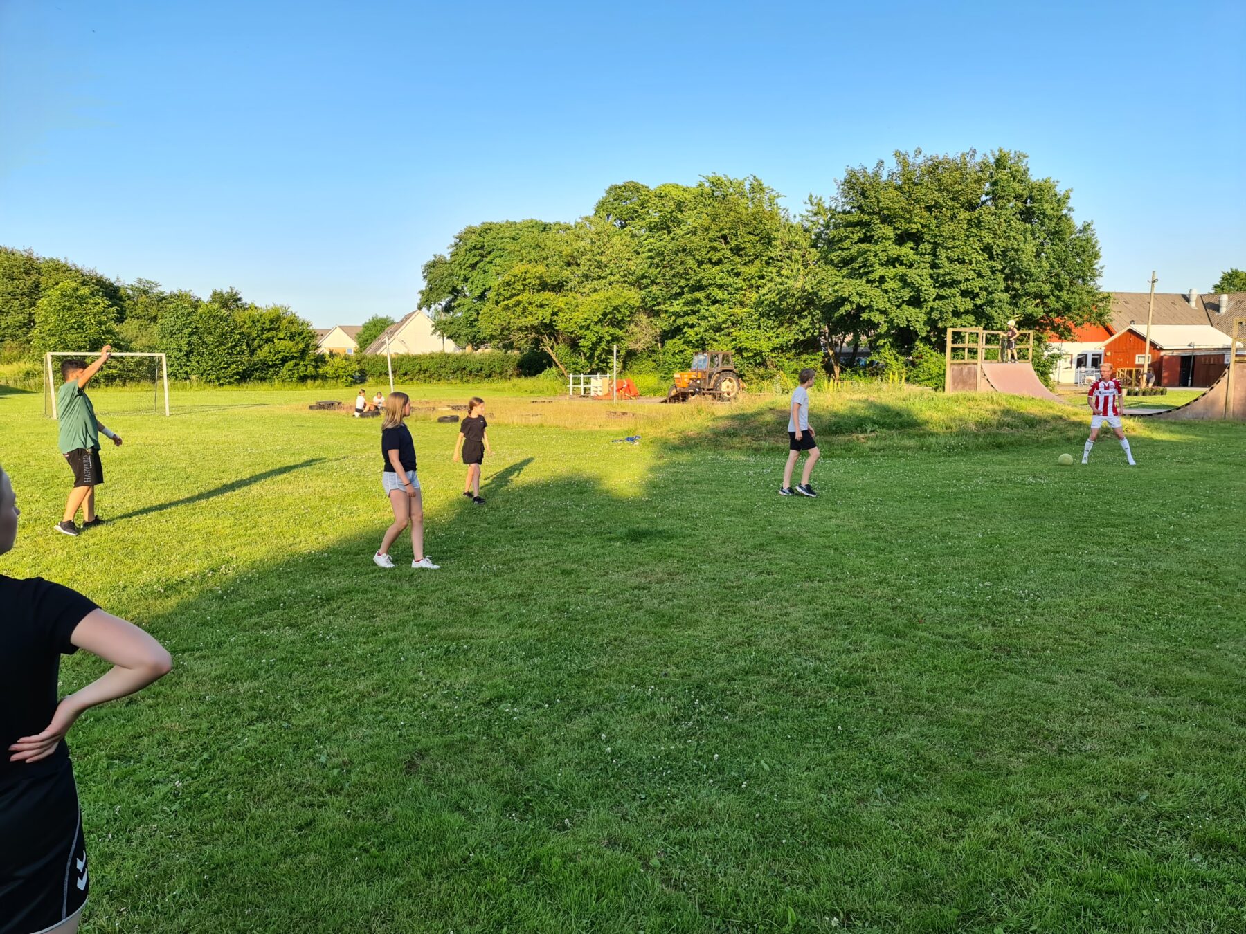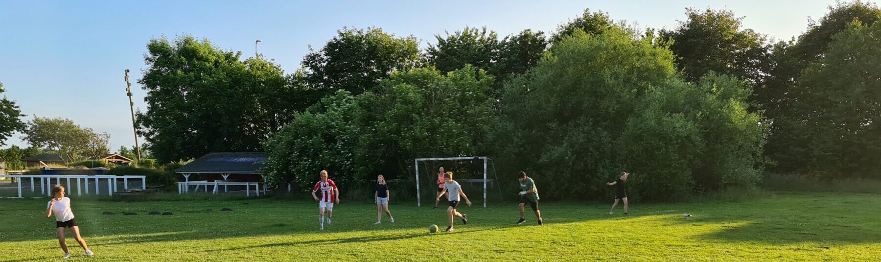 Til aften er der godt gang i vores Ungdomsklub. Der bliver spillet fodbold, rundbold, vandkamp m.v. i den skønne sol med god musik fra vores Soundboks. Nye blomster er ved at blive plantet mens vores heste nyder fyraften efter dagens ridning.