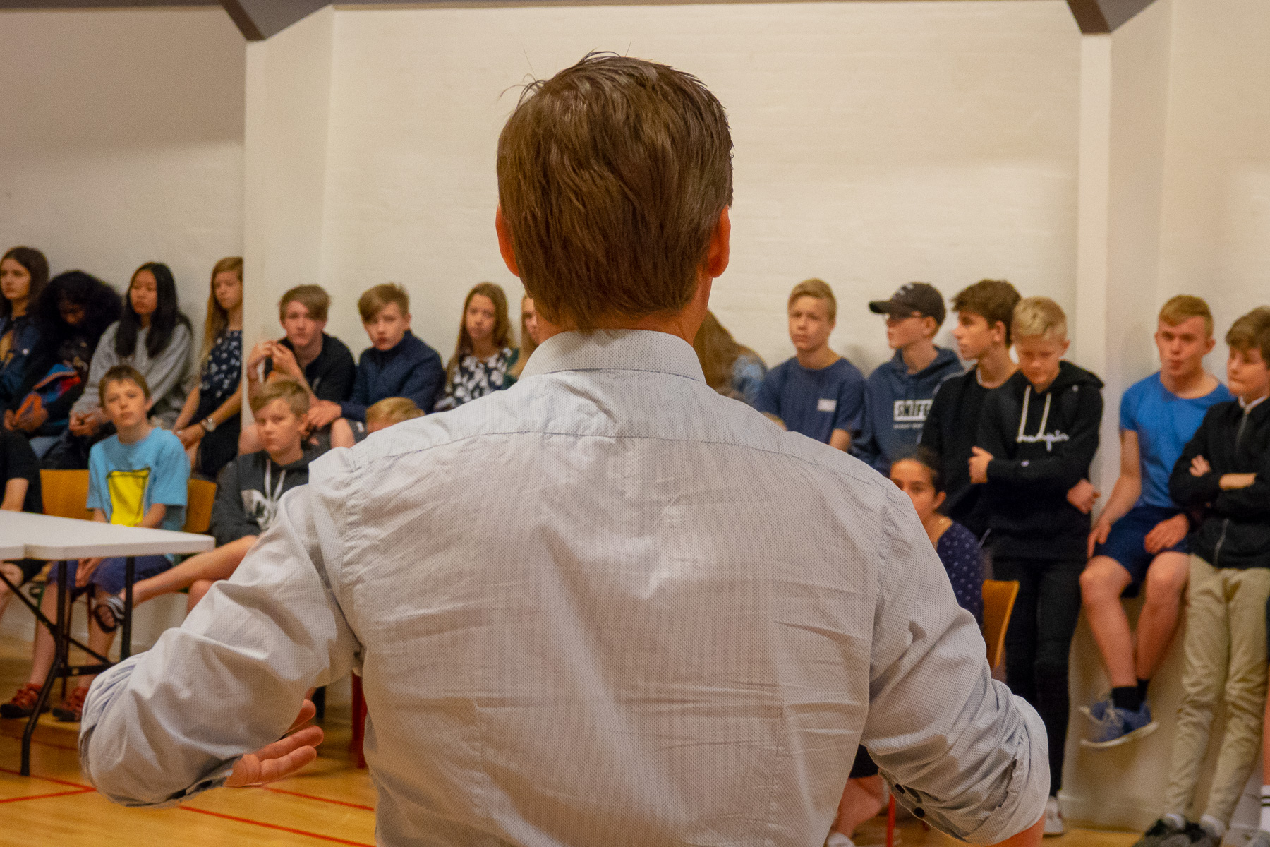 Vi havde blandt andet gæst Denise Bakholm fra Center For Tværfaglig Forebyggelse, og ikke mindst Christian Bols som gav et lille opvarmnings show inden de unge gik ud i grupper for at arbejde.