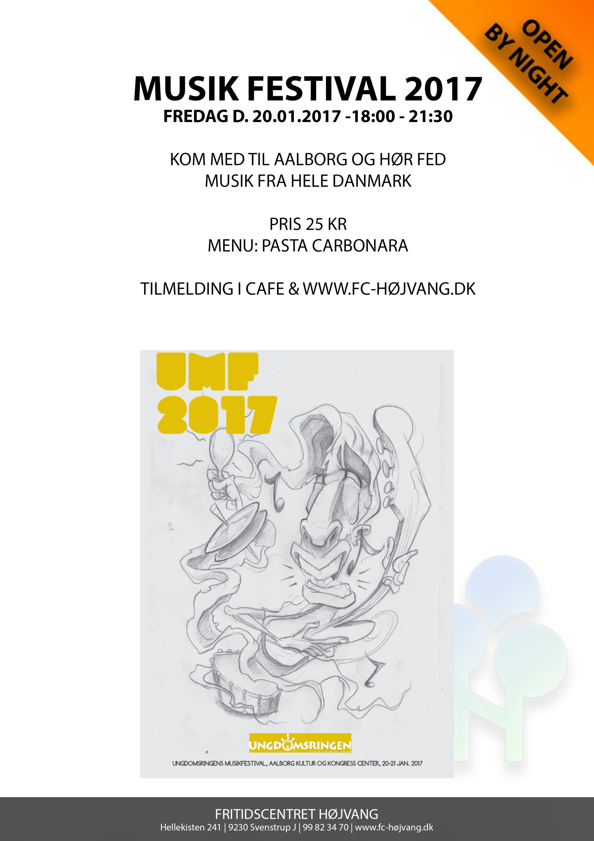 Kurt er i eSport torsdag aften. Kom og spil CS GO med ham og dine venner. Ugens Open By Night er Ungdomsringens Musik Festival. Kom med og hør musik fra hele Danmark. Vi starter med aftensmad klokken 18:00 – prisen er 25 kr. Husk tilmelding.