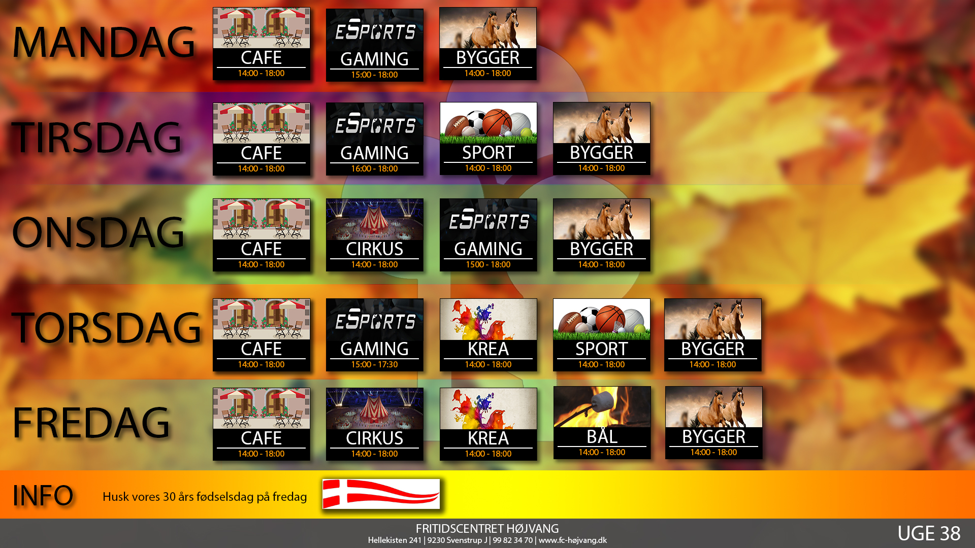 I denne uge skal vi fejre Fritidscentret Højvangs 30 års fødselsdag på fredag. Kom forbi og vær med.